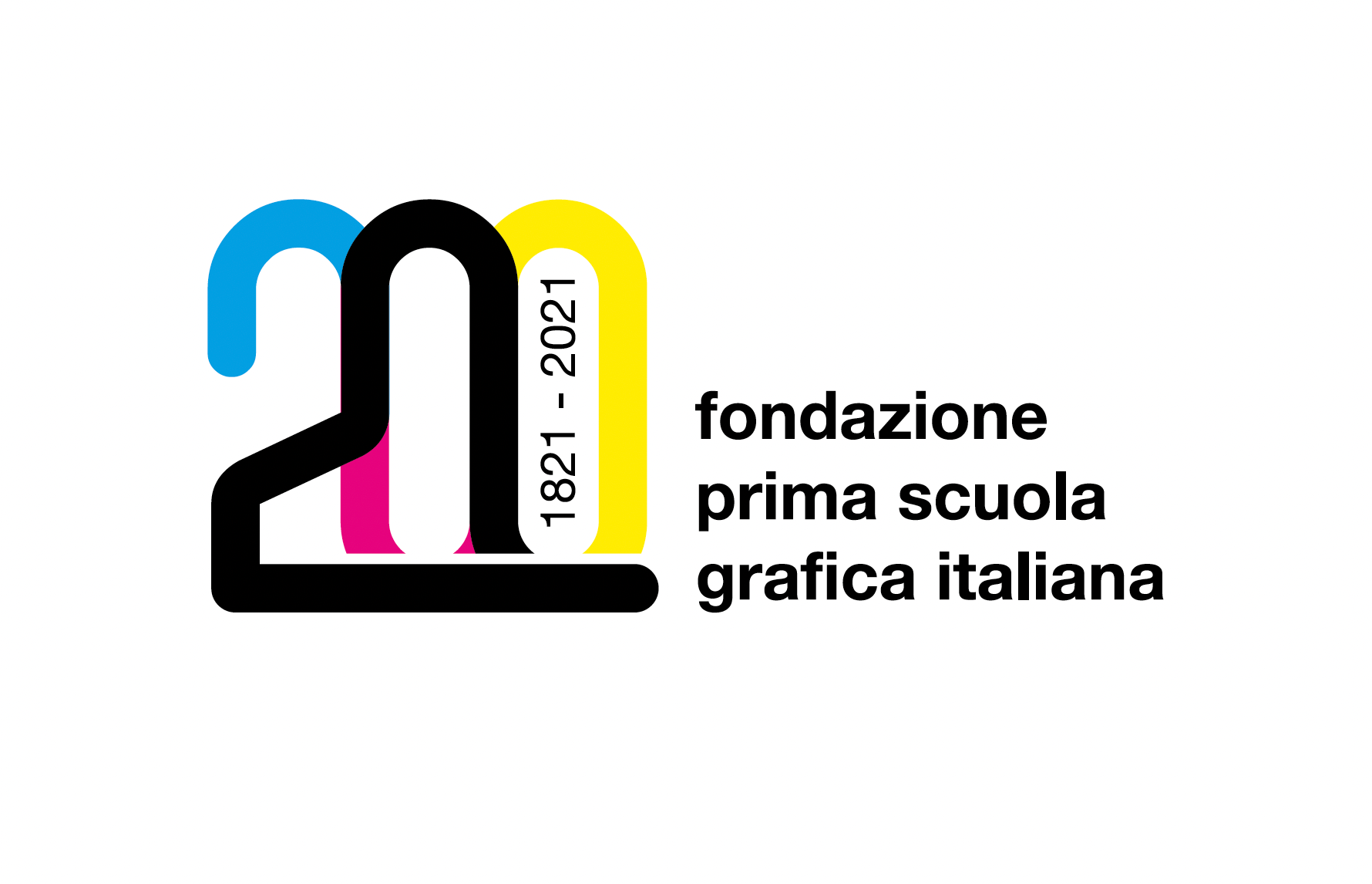 The four primary printing colours (CMYK) celebrate the roots of graphic production, while a black outline recalls the heavy metal frames of early printing presses, linking contemporary design to the craftsmanship of Italy’s first design school.